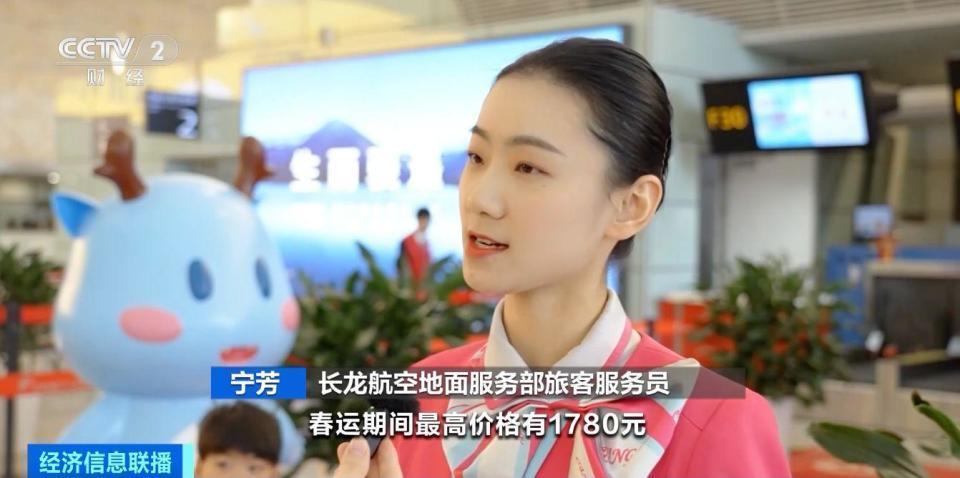 长龙航空大地劳动部搭客劳动员 宁芳:比如说杭州到长白山春运技巧最高价钱1780元,过去一段时刻可能独一300元起。杭州到三亚春运技巧最高2760元,过去一段时刻只需要240元起。