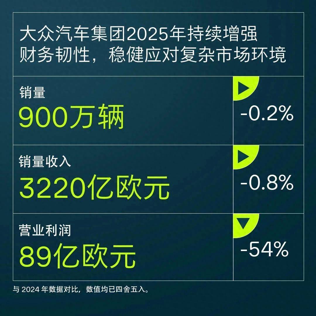 从这份财务数据来看,全球正履历着转型企业典型的“失血周期”。尽管销量、销售收入与2024年同时比较基本保合手一致,但全球营业利润却出现大幅下滑。2025年,该集团营业利润为89亿欧元,同比下滑54%。