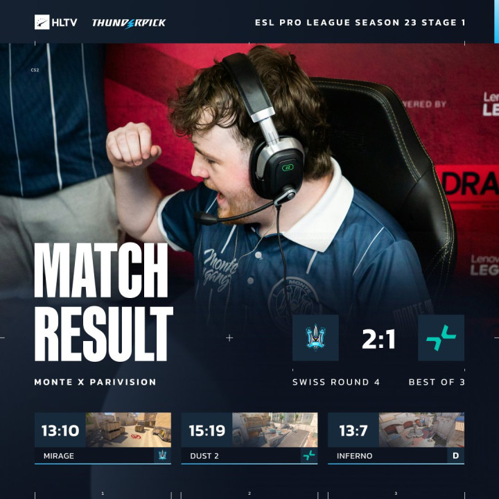 虎扑03月05日讯EPLS23第一阶段第四轮2-1组:Monte对阵PARIVISION。