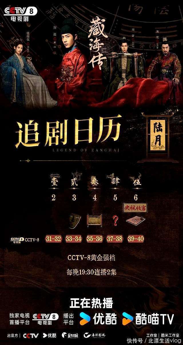 《藏海传》这剧,是确实火!上海东方卫视和北京卫视也随着播,算是1.5轮跟播好像联播。上海东方卫视26号播完《夙敌》,27号空了一天,28号才驱动播《藏海传》,上周平均收视率0.247%,卫视新剧里排第四。北京卫视亦然,27号播完《看不见影子的少年》,28号才驱动播《藏海传》,上周平均收视率0.196%,卫视新剧里排第五。两家卫视的播出时代也一样,周一到周四、周日每天两集,周五周六每天一集。