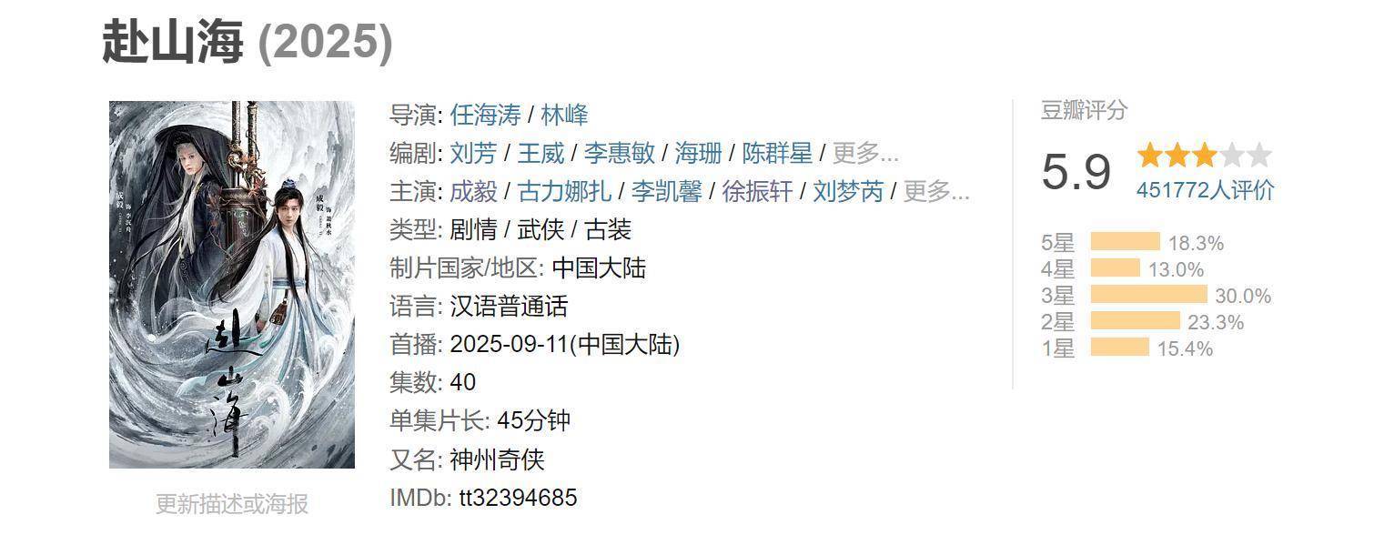 尽管《赴山海》播出前期热度空前上涨,举座的灵验播放数据也极为可不雅,然则《赴山海》口碑崩了依然成了既定的事实。