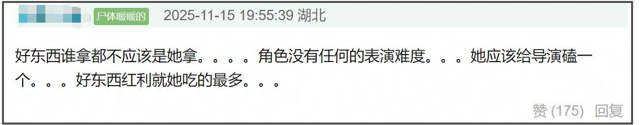 颁完奖之后,场外也有一些话题,比如手脚本届金鸡奖评委主任的张艺谋,也激励了质疑。网友发现影帝影后,目下都在拍摄他的电影《惊蛰无声》,有网友径直吐槽张艺谋不避嫌。