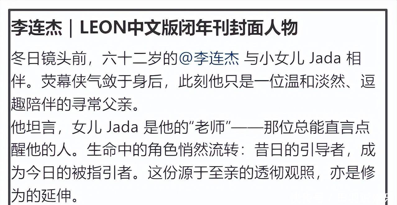 网友以为李连杰偏疼小男儿,也频频带着出面,大约是因为想让男儿走出逆境。至于Jada对父亲的格调,天然算不上何等温顺,但也有些宠溺。毕竟在男儿眼前,李连杰如实像个“老顽童”,男儿反而像个诚恳。