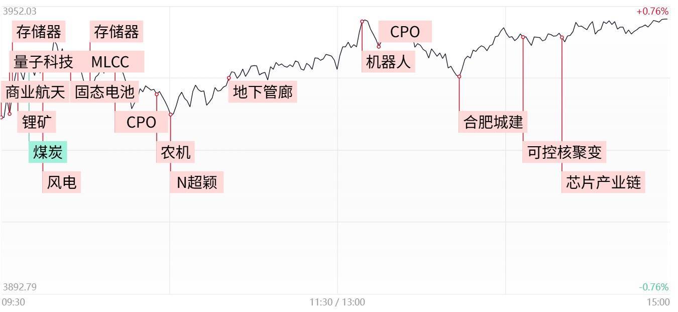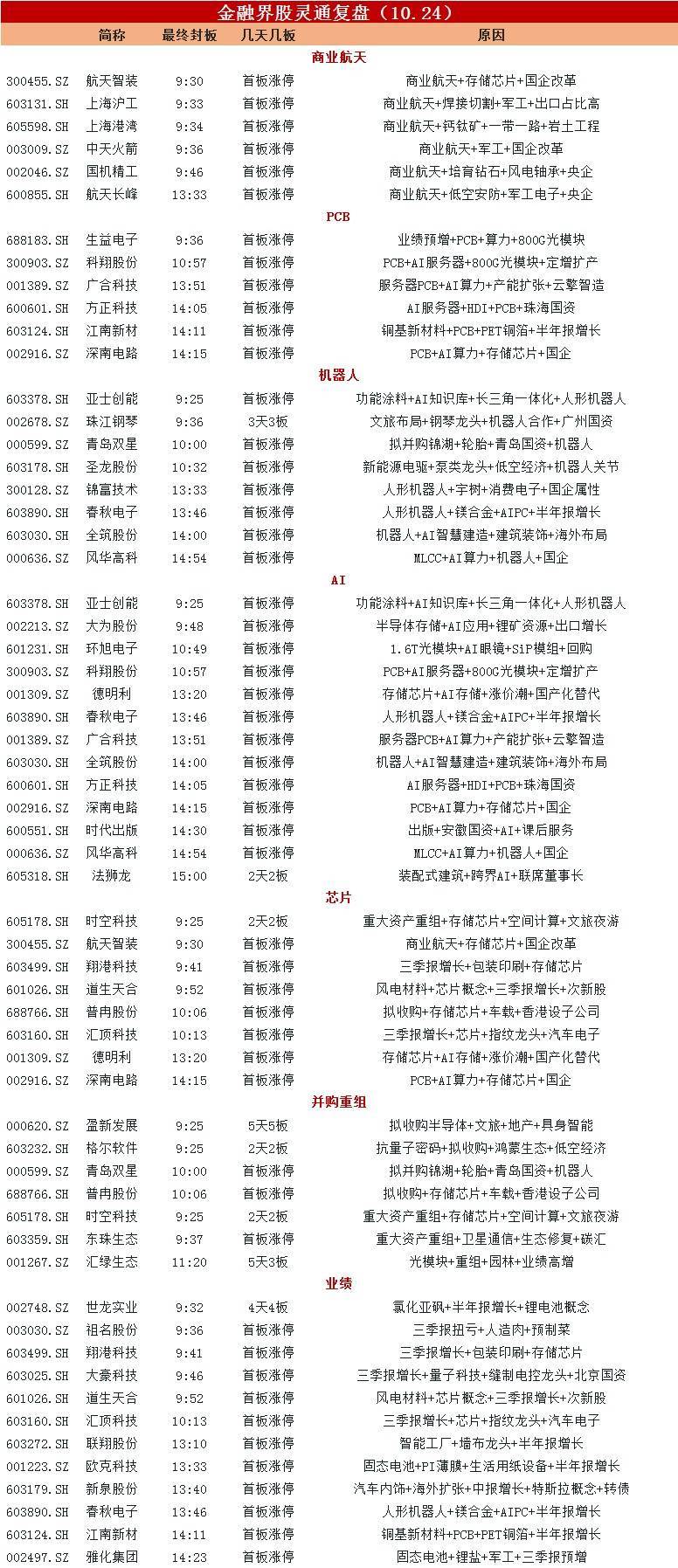 芯片主张股走强,香农芯创等涨停。营业航天板块崛起,航天科技等多股涨停。AI主张活跃,春秋电子等涨停。