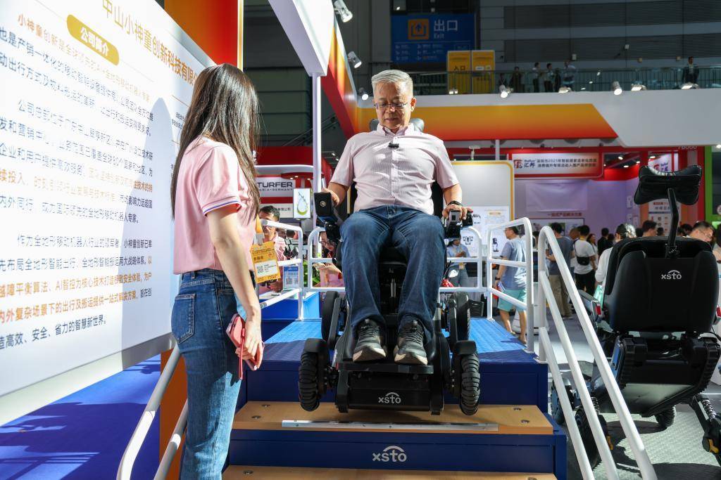 2025年9月12日,在2025深圳海外贤慧养老产业展览会上,不雅众在展会现场体验一款不错高下楼梯的智能出行机器东说念主。新华社记者 梁旭 摄